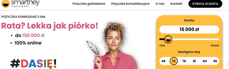 RRSO 15,5% od 100 do 30 000 zł od 18 lat od 7 do 30 dni Ostatnia aktualizacja: 31 marzec 2026 Informacje o SmartneySzukaj mikropożyczek według kwoty i terminuSmartney - opinie klientówSmartney dawał mi trochę większą kwotę niż inne szybkie pożyczki, co mi pomogło ogarnąć większy wydatek. Raty były jasne, choć przy dłuższym okresie wyszło drożej niż myślałem. Mimo to uważam, że to dobra opcja, jeśli potrzebujesz większej sumy i chcesz spłacać w ratach.