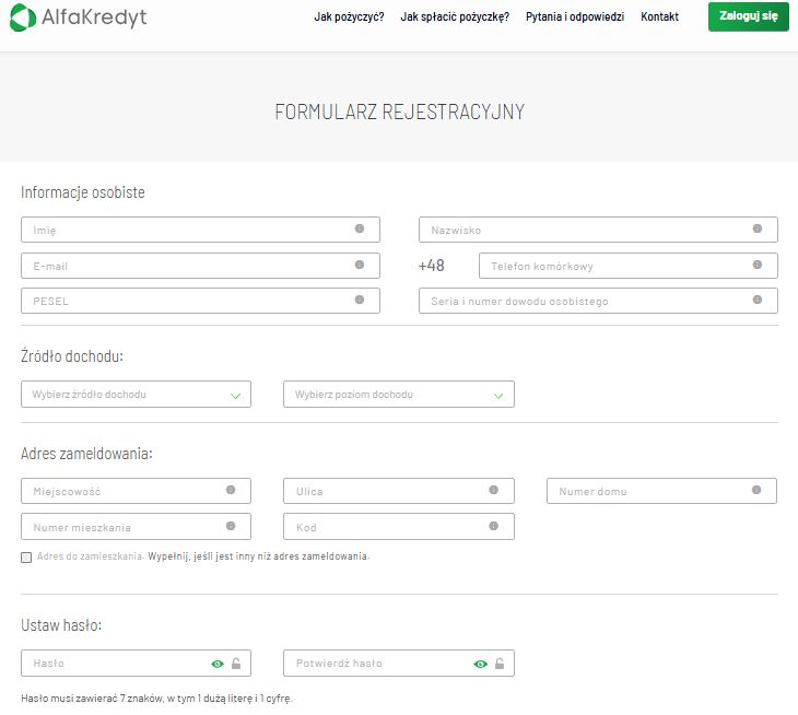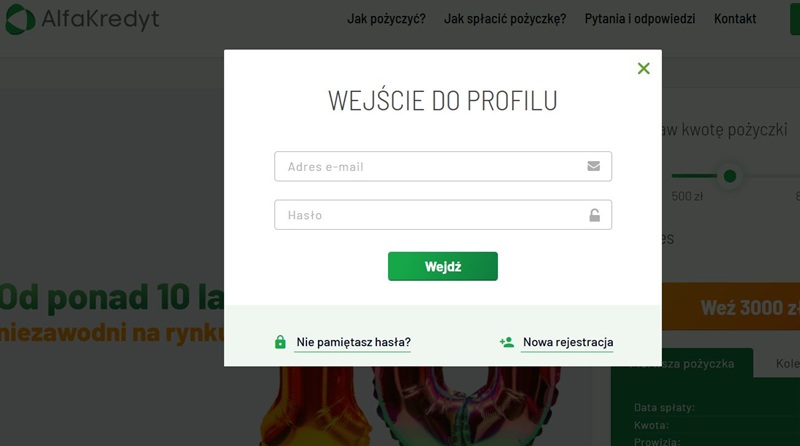 Alfakredyt logowanieRejestracja logowanie w Alfa Kredyt